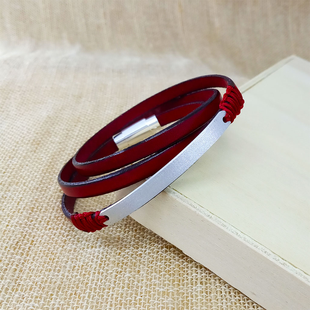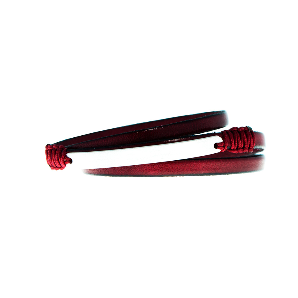 Χειροποίητο βραχιόλι από ασήμι 925, ταυτότητα (4,5 εκ.) σε χρυσό ή λευκό ματ χρώμα, περασμένη σε λουρί από δέρμα.